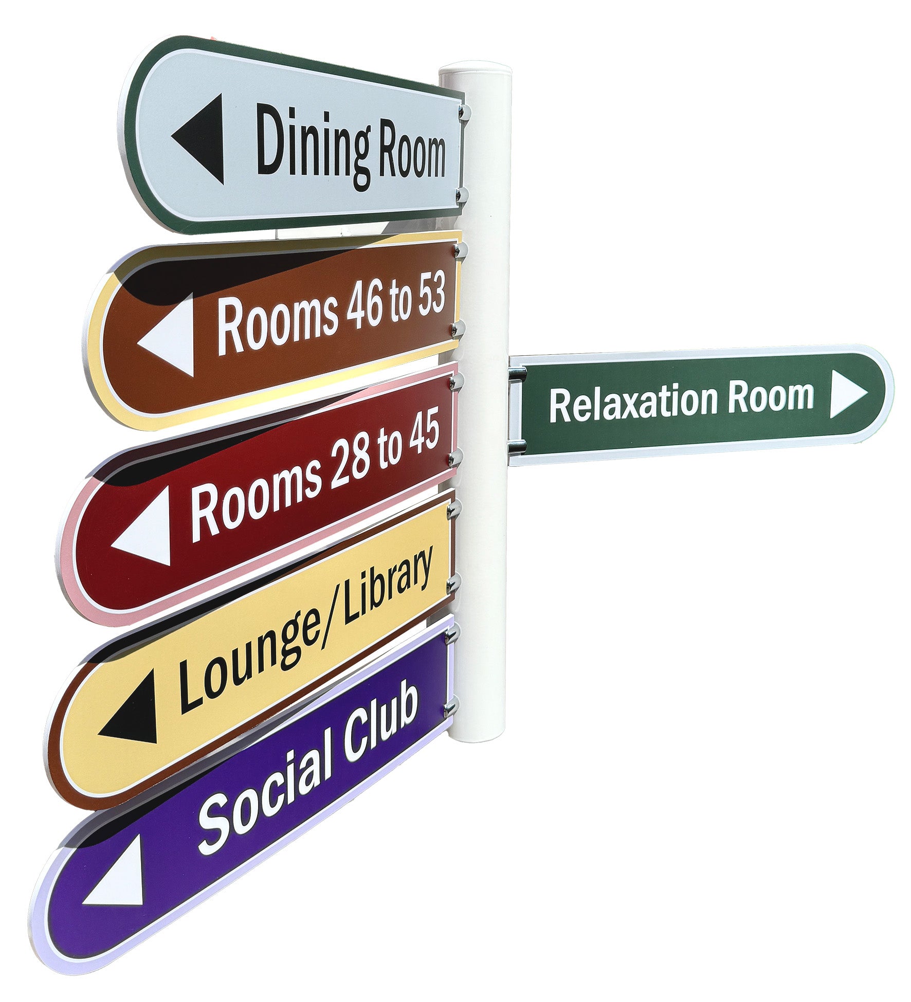 The fingers are manufactured in 5mm PVC, class 1 fire rating and available single or double sided. They provide a colourful, informative feature that we now offer as a wall mounted or floor standing option.
